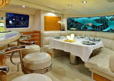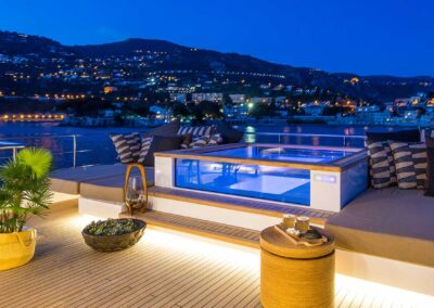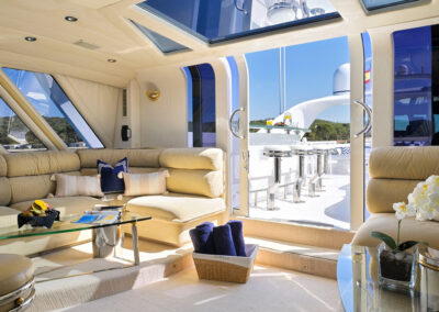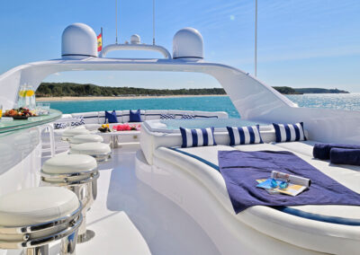 A charter on Moonraker is comfortable and convenient thanks to the provided amenities, notably a gym with all the latest equipment to maintain your fitness routine. Retreat to the deck jacuzzi and soak up the scenery.