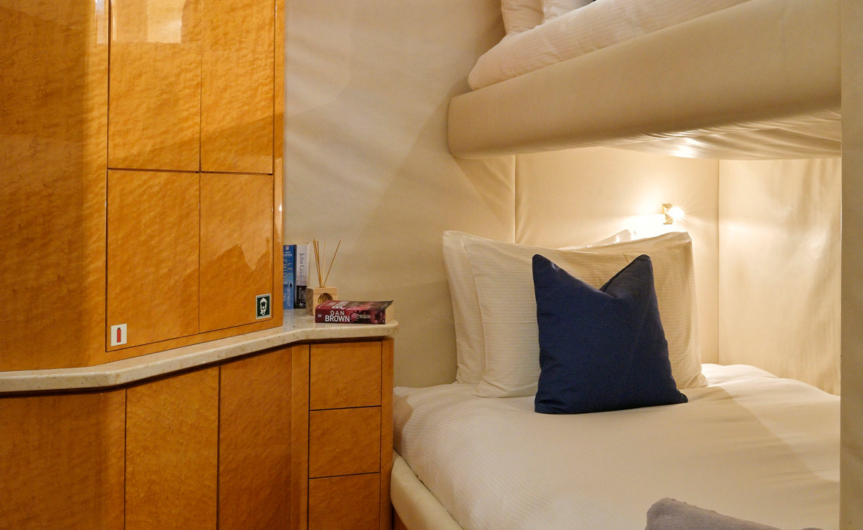 Whatever your activities on your charter, you’ll find some impressive features are seamlessly integrated to help you, notably Wi-Fi connectivity, allowing you to stay connected at all times, should you wish. Guests will experience complete comfort while chartering thanks to air conditioning.
