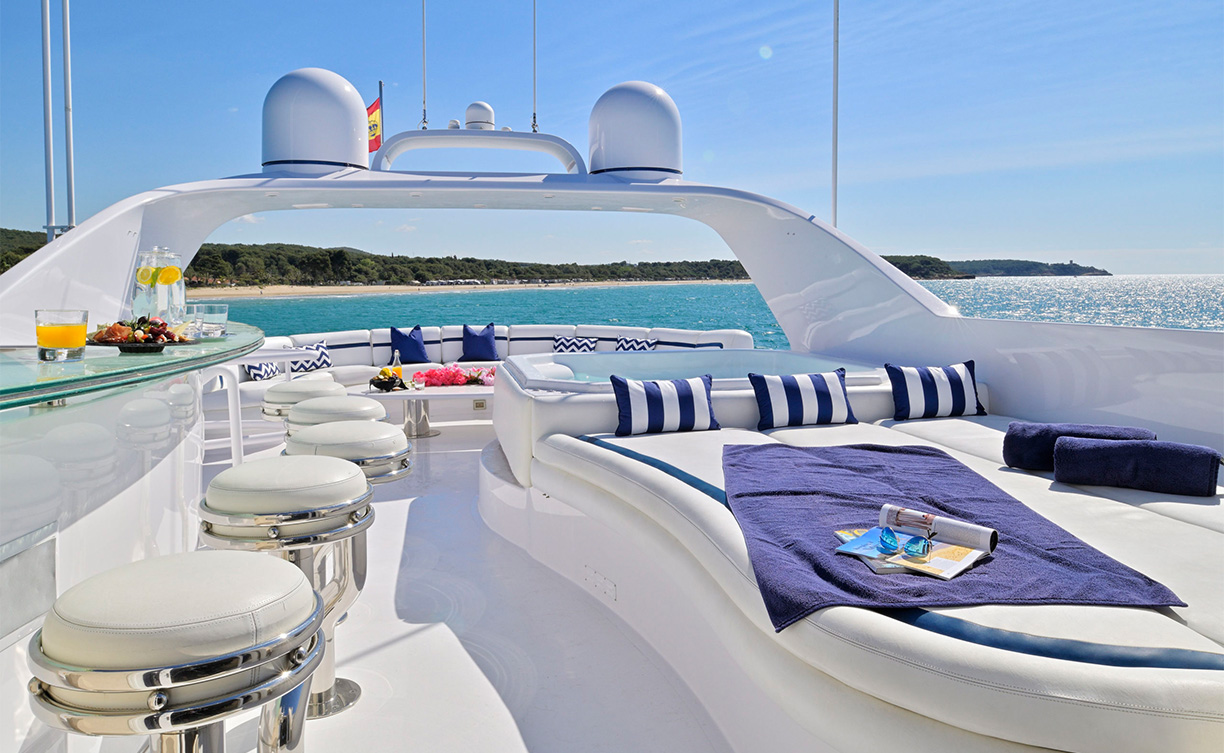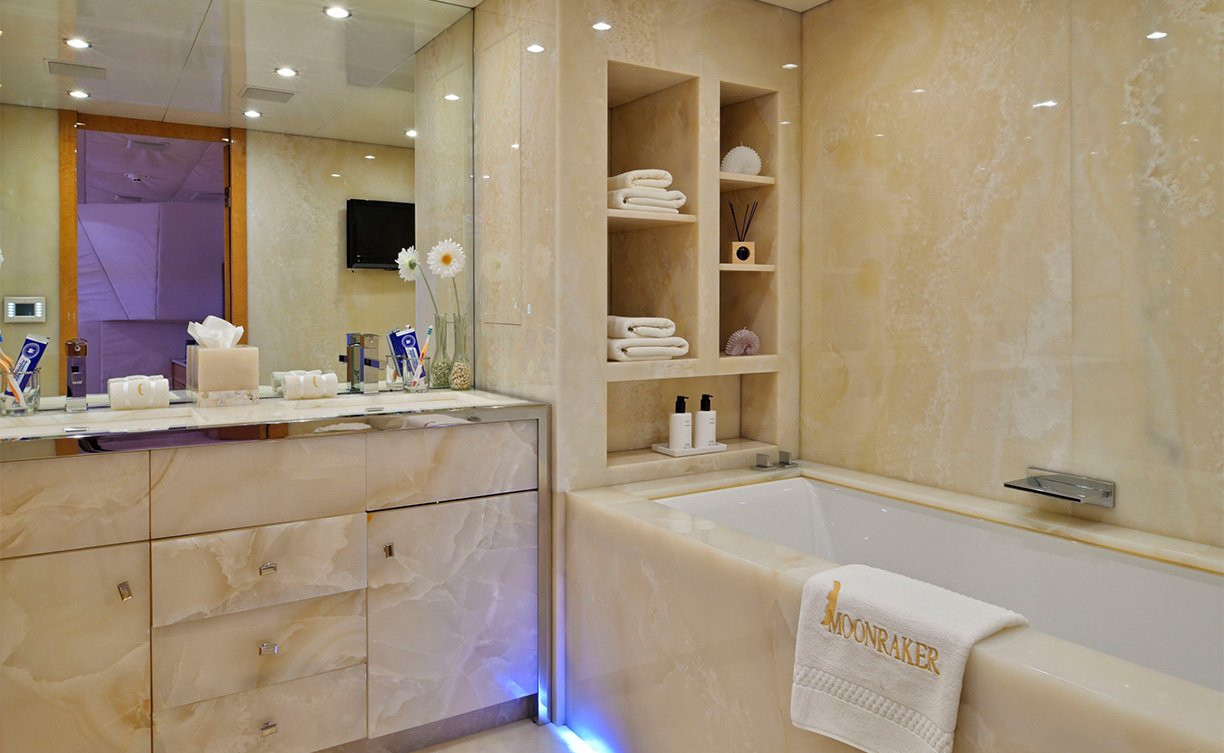 A charter on Moonraker is comfortable and convenient thanks to the provided amenities, notably a gym with all the latest equipment to maintain your fitness routine. Retreat to the deck jacuzzi and soak up the scenery.